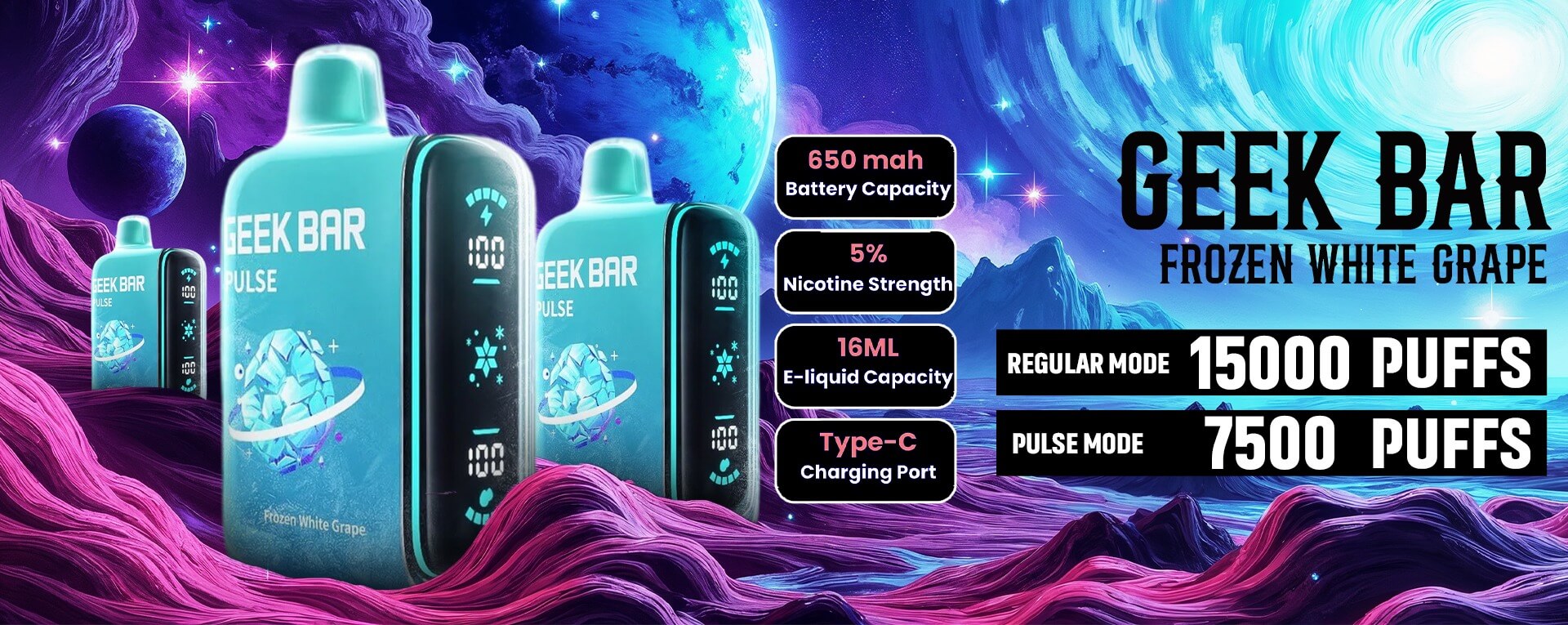 Frozen White Grape is available in the Geek Bar Pulse 15000 platform.