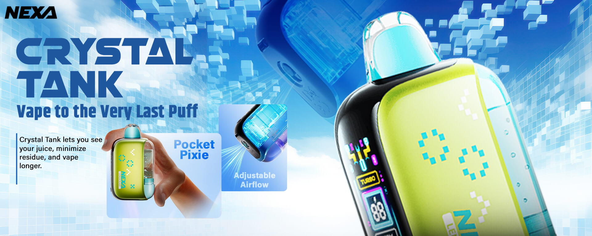 The Nexa Pix 35K pushes disposables further with a mix of smart features and clever design. The Nexa Pix 35K delivers up to 35,000 puffs with its dual mesh coil. It also features the Juicy Lock dual-reservoir system, designed to squeeze out every last drop of e-liquid.